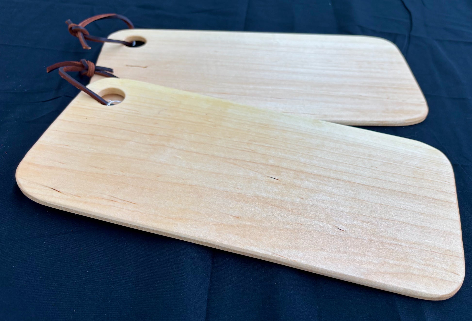 Perfect board for a small charcuterie selection. It is handcrafted from Beech wood with rounded corners and edges. There is a hole that allows for the board to be placed directly on a hook or using a tie. We have provided a leather tie for your convenience, which can easily be removed.