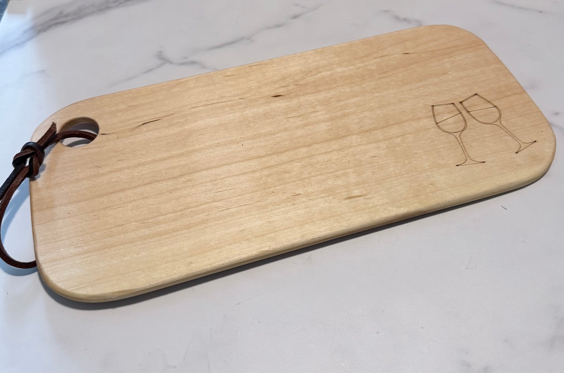 Small Beech Wood Charcuterie Board with engraving of wine glasses
